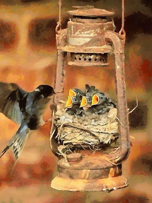 Three Birds White Modern Wood Framed Art Print with Double Matting by Medeiros, Celito