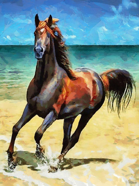 Horse on the Beach White Modern Wood Framed Art Print with Double Matting by Medeiros, Celito