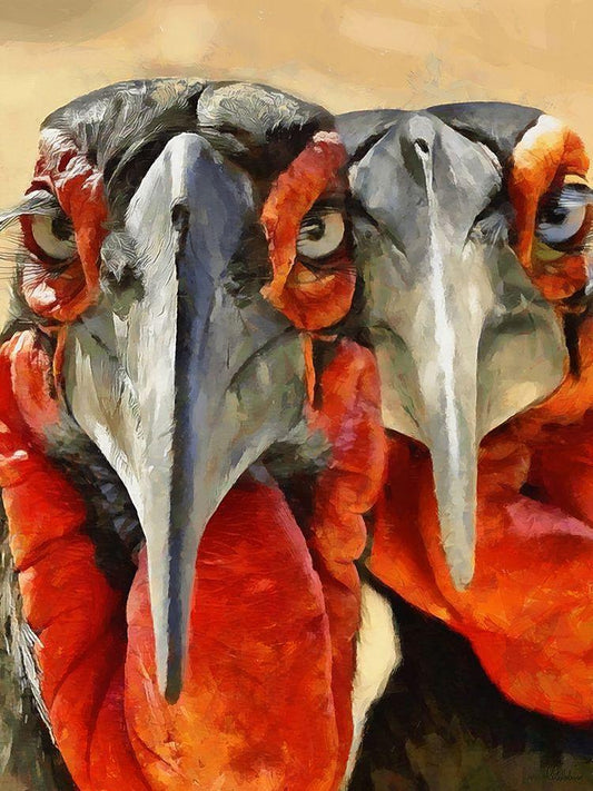 Two Red Turkey White Modern Wood Framed Art Print with Double Matting by Medeiros, Celito