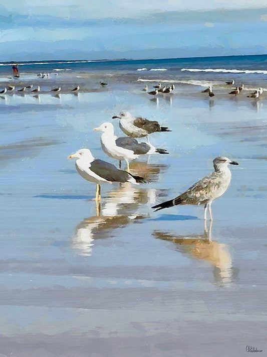 Seagulls ont the Beach White Modern Wood Framed Art Print with Double Matting by Medeiros, Celito