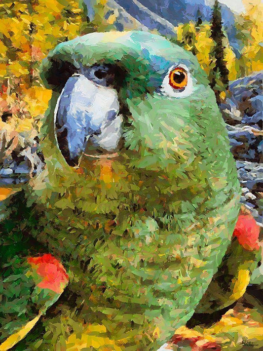 Green Parrot White Modern Wood Framed Art Print with Double Matting by Medeiros, Celito