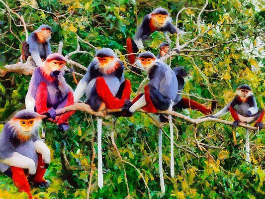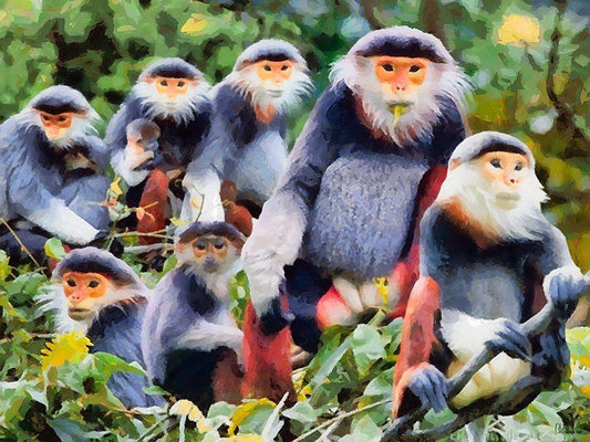 Monkies I White Modern Wood Framed Art Print with Double Matting by Medeiros, Celito