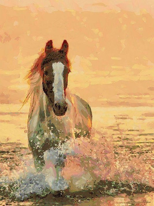 Horse in the Pond White Modern Wood Framed Art Print with Double Matting by Medeiros, Celito