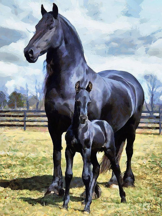 Mare with Foal White Modern Wood Framed Art Print with Double Matting by Medeiros, Celito
