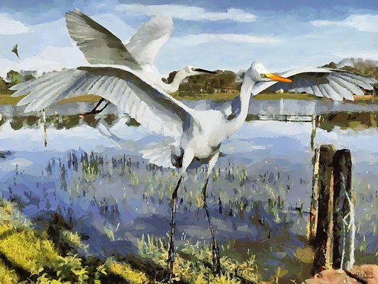 Storks on the Lake II White Modern Wood Framed Art Print with Double Matting by Medeiros, Celito