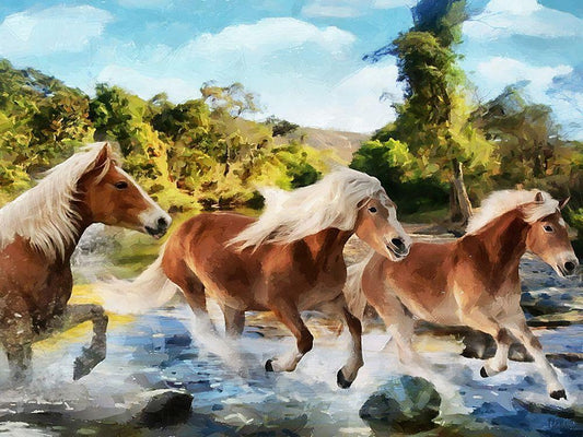 Running Horses in Water White Modern Wood Framed Art Print with Double Matting by Medeiros, Celito