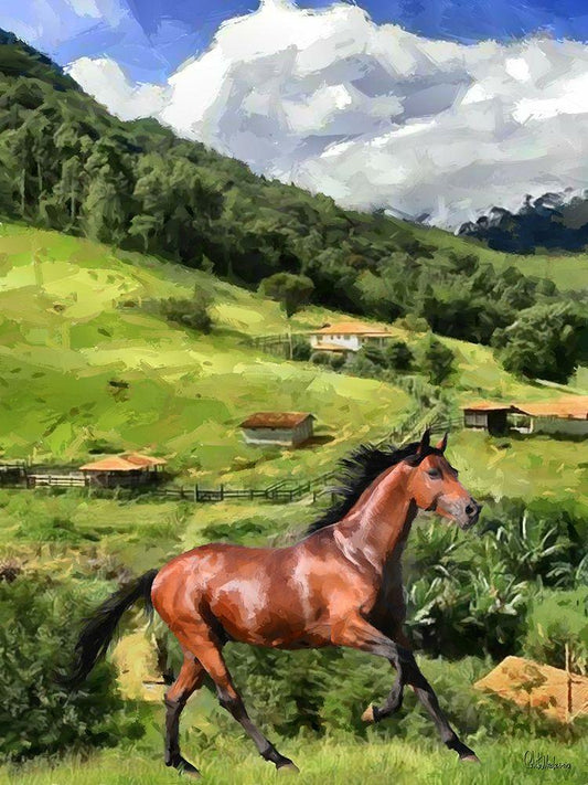 Running Horse in Countryside White Modern Wood Framed Art Print with Double Matting by Medeiros, Celito