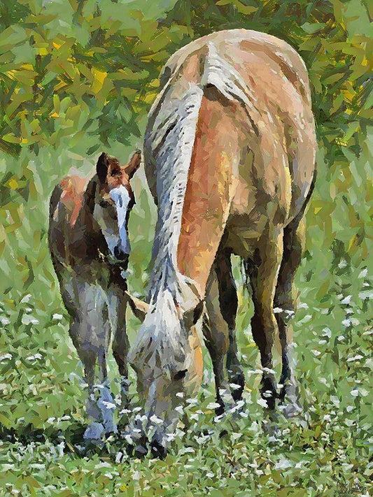 Mare with Foal White Modern Wood Framed Art Print with Double Matting by Bizon, Vladimir