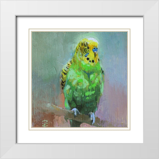 Parrots I White Modern Wood Framed Art Print with Double Matting by Rogozina, Svetlana