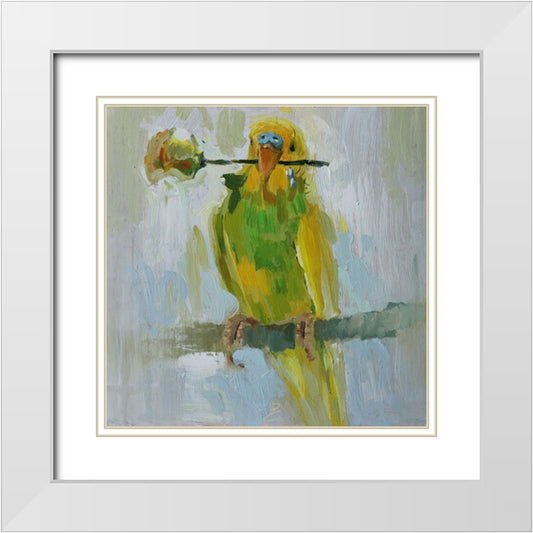Parrots II White Modern Wood Framed Art Print with Double Matting by Rogozina, Svetlana