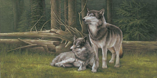 Wolf Brothers in Summer White Modern Wood Framed Art Print with Double Matting by Novak, Bohuslav