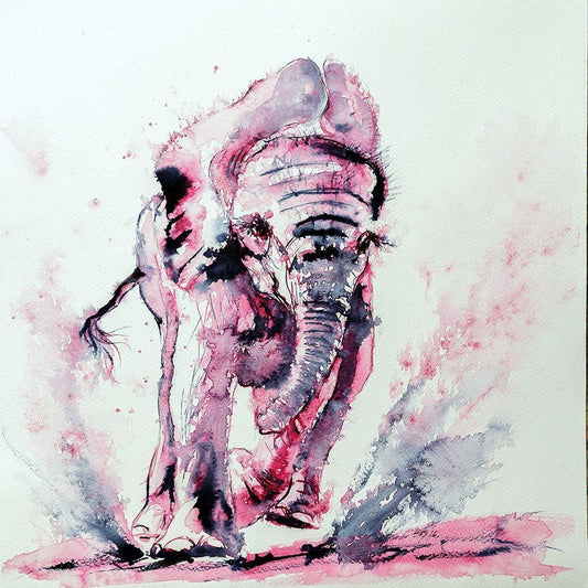 Elephant in pink White Modern Wood Framed Art Print with Double Matting by Kovacs, Anna Brigite