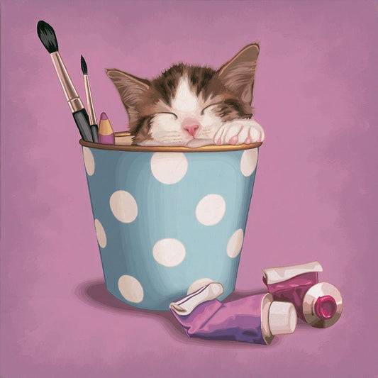 Gifted kitten White Modern Wood Framed Art Print with Double Matting by Cazenave, Maryline