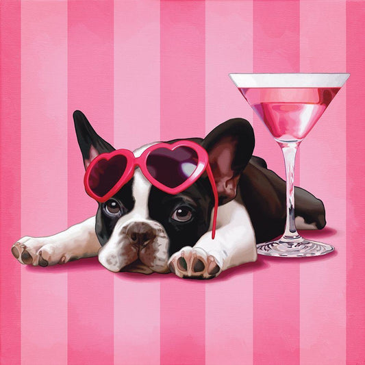Boston terrier White Modern Wood Framed Art Print with Double Matting by Cazenave, Maryline