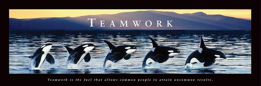 Teamwork - Whales White Modern Wood Framed Art Print with Double Matting by Frontline