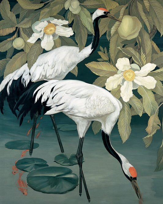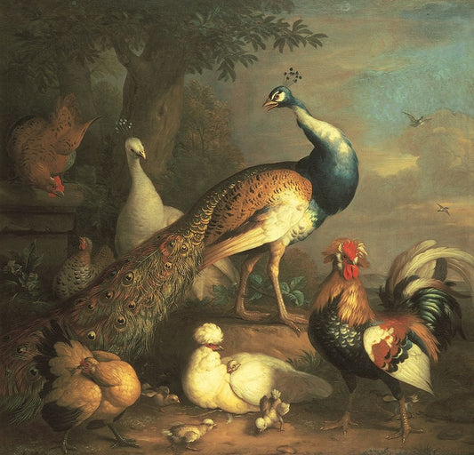 Peacock And Friends White Modern Wood Framed Art Print with Double Matting by Unknown