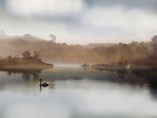 Morning on the River White Modern Wood Framed Art Print with Double Matting by Rega, S.