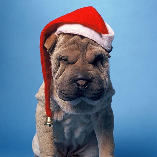 Shar Pei with x-mas hat White Modern Wood Framed Art Print with Double Matting by Hoenderkamp, Patrick