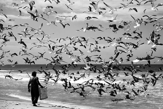 Spread The Fish Nets White Modern Wood Framed Art Print with Double Matting by Song, Gunarto