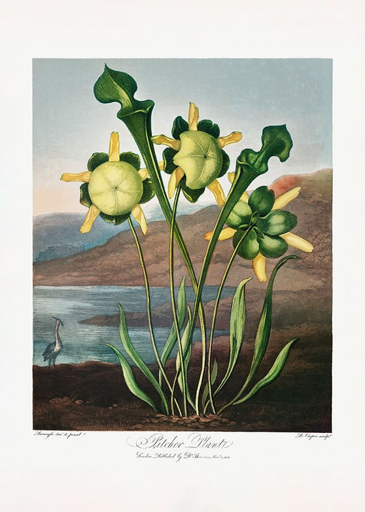 Pitcher Plant from The Temple of Flora (1807) White Modern Wood Framed Art Print with Double Matting by Pictufy