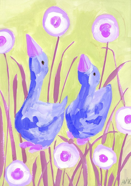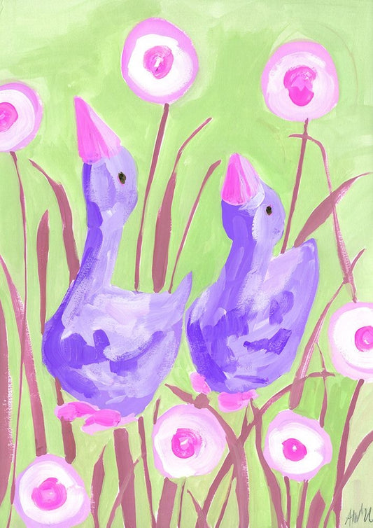 Violet Gees In The Garden White Modern Wood Framed Art Print with Double Matting by Zwara, Ania