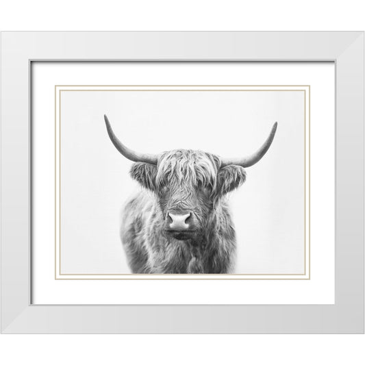 Highland Bull White Modern Wood Framed Art Print with Double Matting by Pienaar, Kathrin