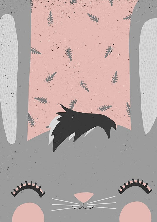Little Bunny White Modern Wood Framed Art Print with Double Matting by Treechild