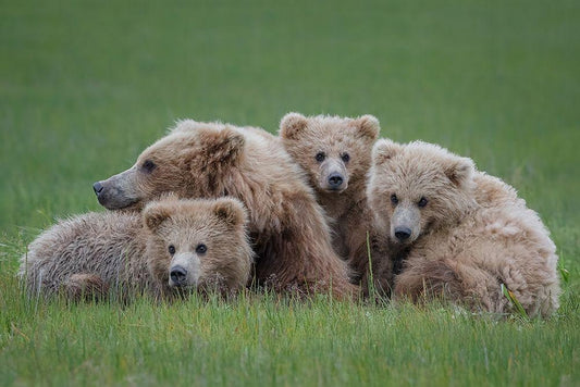 Bear Huddle White Modern Wood Framed Art Print with Double Matting by Doyle, Renee