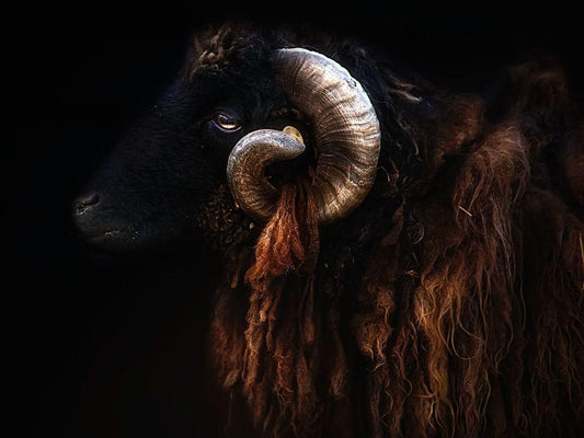 Ram portrait White Modern Wood Framed Art Print with Double Matting by Pascual Buye, Santiago