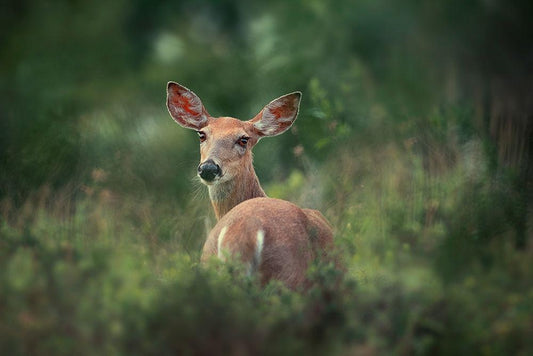 Elk Lost in Mist White Modern Wood Framed Art Print with Double Matting by Simoon