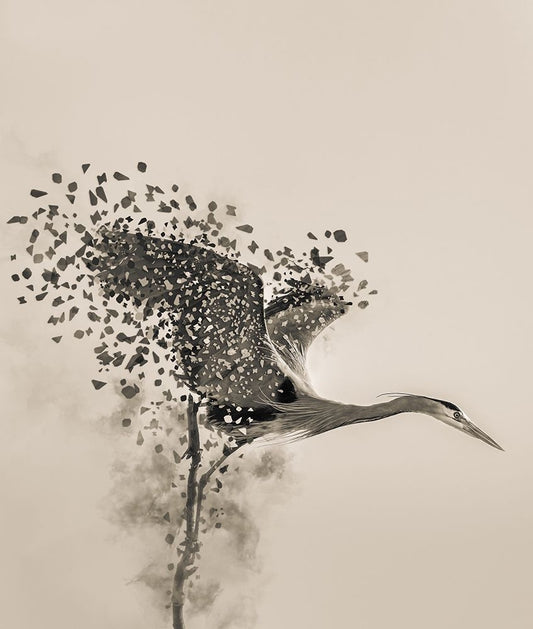 A Blue Heron White Modern Wood Framed Art Print with Double Matting by Li, Yunqiang