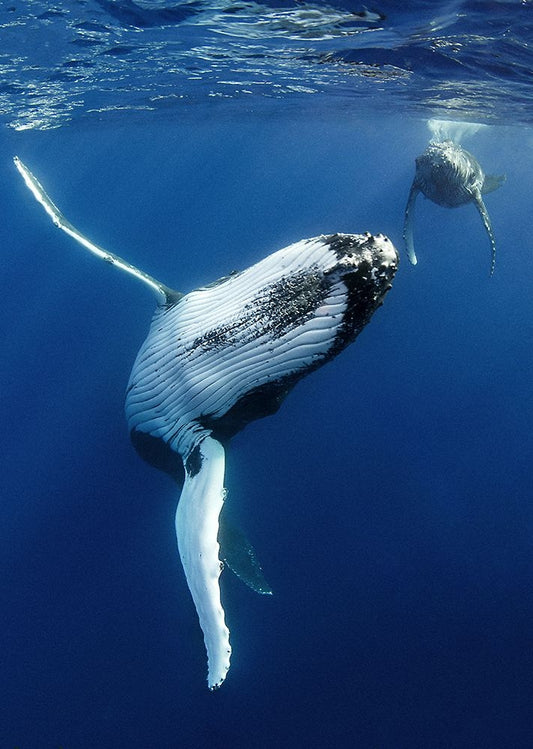 Humpback Whales White Modern Wood Framed Art Print with Double Matting by Peneau, Cedric