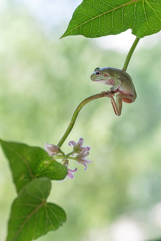 Curious Tree Frog White Modern Wood Framed Art Print with Double Matting by Summer2016
