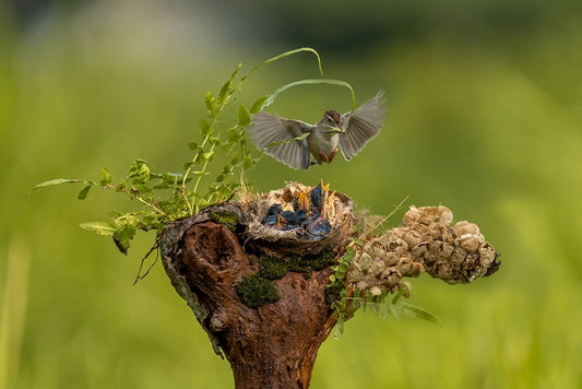 For The Nest White Modern Wood Framed Art Print with Double Matting by Pino, Emilio