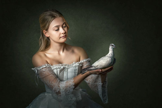 Pigeongirl White Modern Wood Framed Art Print with Double Matting by Egger, Marcel