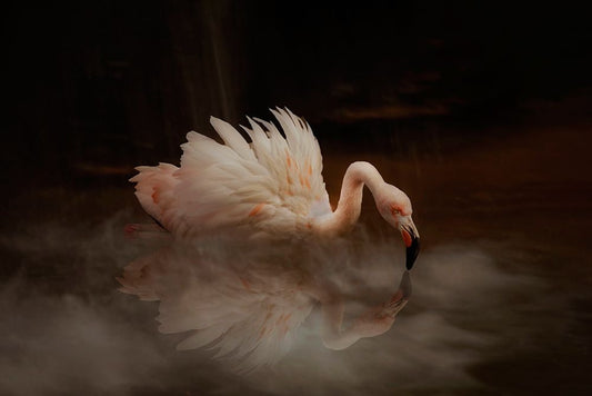 Flamingos Paradise White Modern Wood Framed Art Print with Double Matting by Wisniowska, Krystina