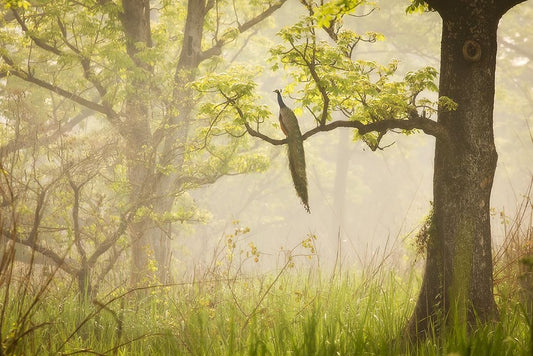 Peacock White Modern Wood Framed Art Print with Double Matting by Mirica, Dan