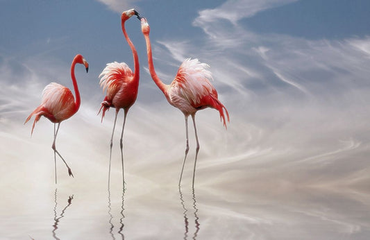 Three white swans White Modern Wood Framed Art Print with Double Matting by Lei, Leanne