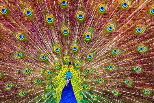 Peacock White Modern Wood Framed Art Print with Double Matting by Michael