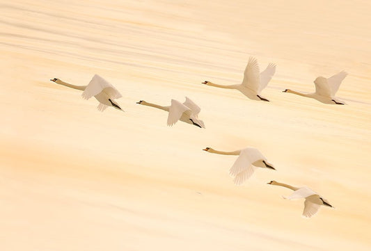 A Sandy Hill Crane In Flight White Modern Wood Framed Art Print with Double Matting by Zheng, Sanbao