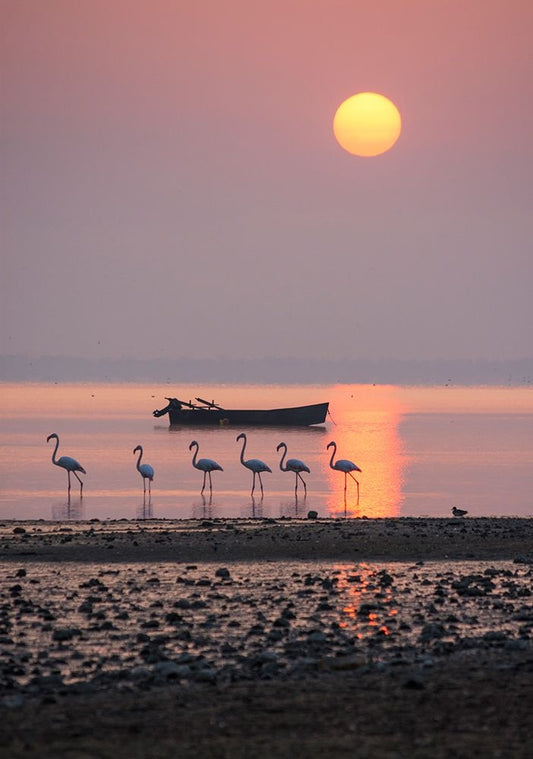 Hundreds Of Flamingos White Modern Wood Framed Art Print with Double Matting by J. Chen, John