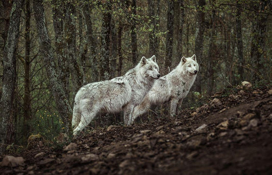 Meeting with white Wolves White Modern Wood Framed Art Print with Double Matting by Siri, Ronan