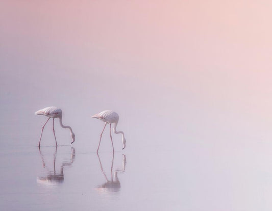 Flamingo White Modern Wood Framed Art Print with Double Matting by Chang, Phillip