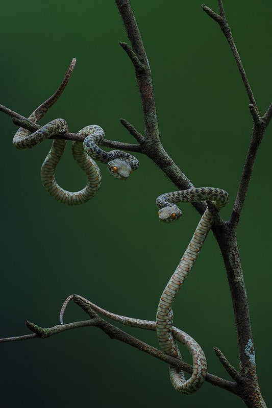 Hon Son Pit Viper White Modern Wood Framed Art Print with Double Matting by Tan Phat, Dao