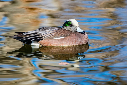 Male American Wigeon in freshwater pond-New Mexico White Modern Wood Framed Art Print with Double Matting by Pryor-Luzier, Maresa