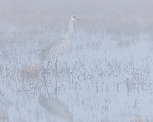 Sandhill crane-foggy morning-Bosque del Apache National Wildlife Refuge-New Mexico White Modern Wood Framed Art Print with Double Matting by Pryor-Luzier, Maresa