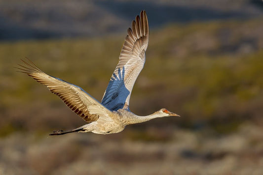 Sandhill crane flying Bosque del Apache National Wildlife Refuge-New Mexico White Modern Wood Framed Art Print with Double Matting by Jones, Adam
