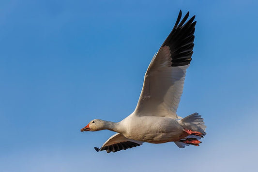 Snow goose flying Bosque del Apache National Wildlife Refuge-New Mexico White Modern Wood Framed Art Print with Double Matting by Jones, Adam