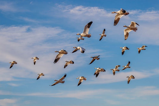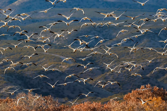Snow geese flying Bosque del Apache National Wildlife Refuge-New Mexico White Modern Wood Framed Art Print with Double Matting by Jones, Adam