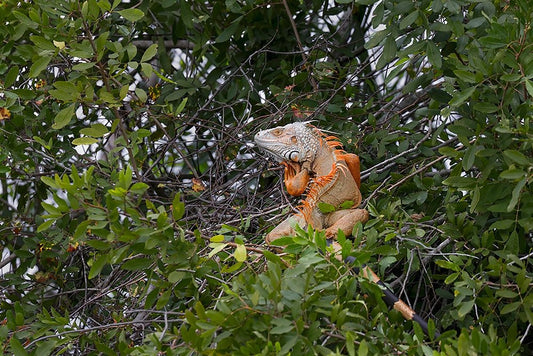 Large Green iguana-an invasive species in Florida White Modern Wood Framed Art Print with Double Matting by Jones, Adam